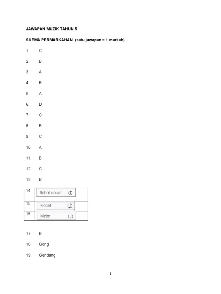 Contoh Soalan Peperiksaan Muzik Tahun 5